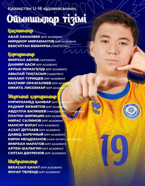 В составе команды - воспитанники академии КФФ, а также два футболиста, тренирующиеся в европейских академиях - Абдулла Бапишев из "Магдебурга" (Германия) и Карим Мендиканов из "Сан-Кугата" (Испания), подписавший контракт о выступлении за академию "Барселоны" (Испания) с осени 2026 года.