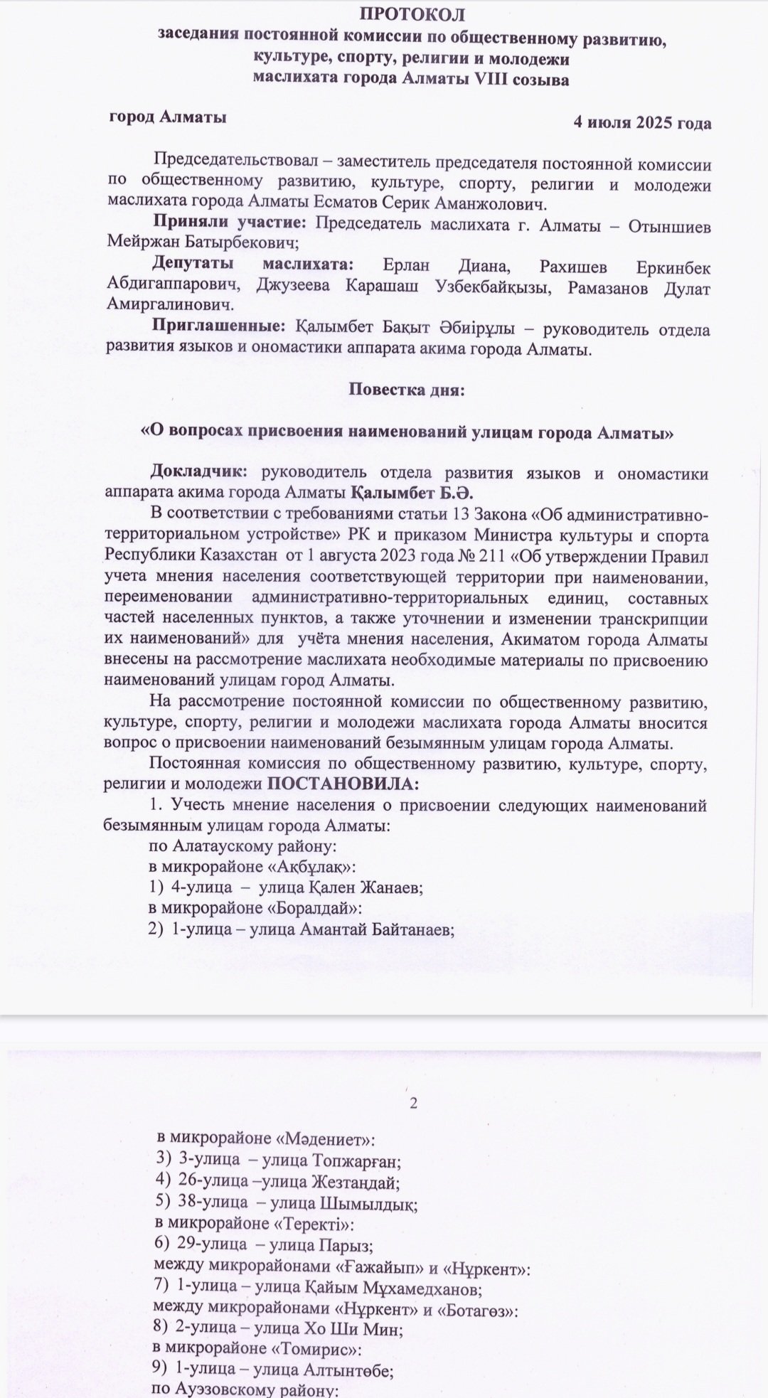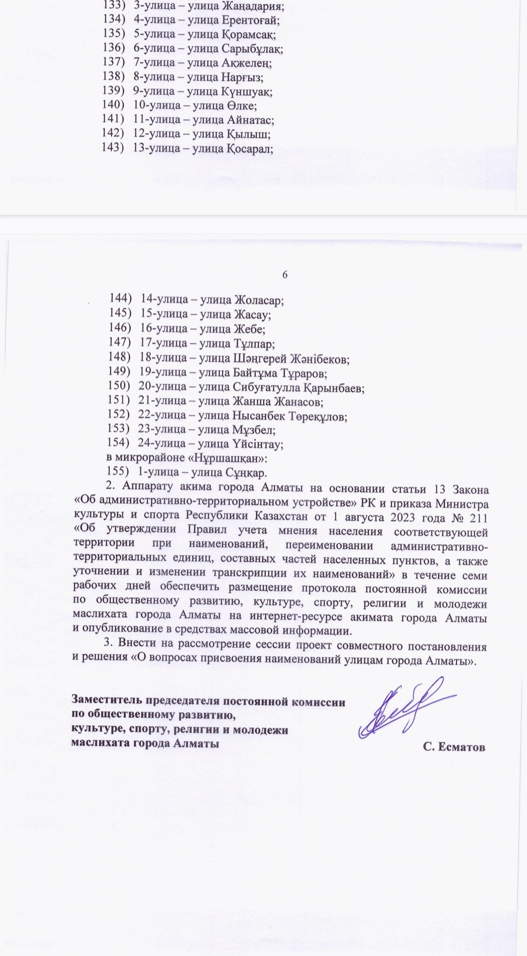 Мы ознакомились с протоколом заседания постоянной комиссии маслихата Алматы по культуре, спорту, религии и молодежи за полписью заместителя председателя в лице депутата маслихата, спортсмена- паралимпийца Серика Есматова.