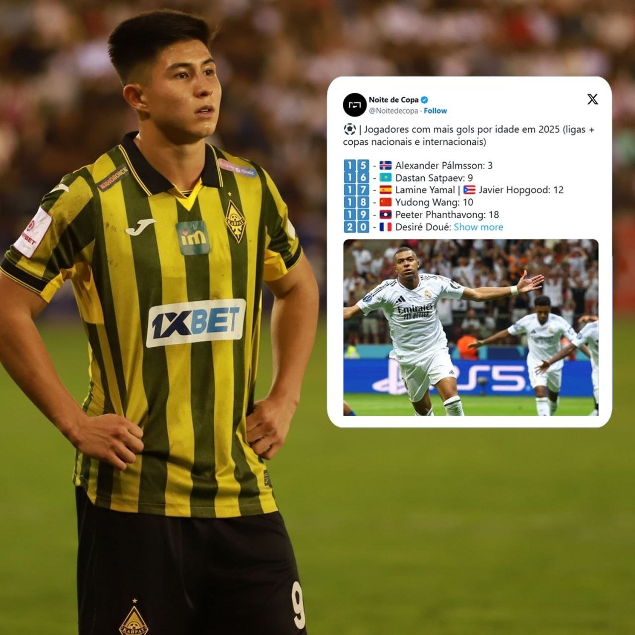 На текущий момент (30 июня) Сатпаев забил девять голов в официальных матчах (с учетом чемпионата Казахстана, кубковых турниров и игр за сборную), опередив сверстников из других стран. Эти данные приводит статистический отдел Noite de Copa.