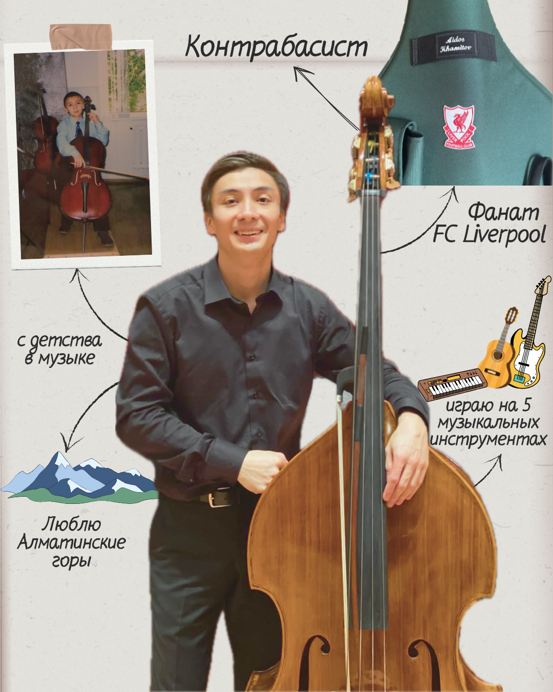 Сегодня мы расскажем о том, как спорт и контрабас помогают находить гармонию между телом и искусством. Музыка требует не только таланта, но и силы, концентрации и выносливости. Контрабасист Айдос Хамитов уверен чтобы достичь гармонии в искусстве, нужно прежде всего быть в гармонии с самим собой. В интервью «Спортивной орде» Айдос Хамитов рассказал о своём пути в музыке, обучении в США и о том, какую роль спорт играет в его жизни.